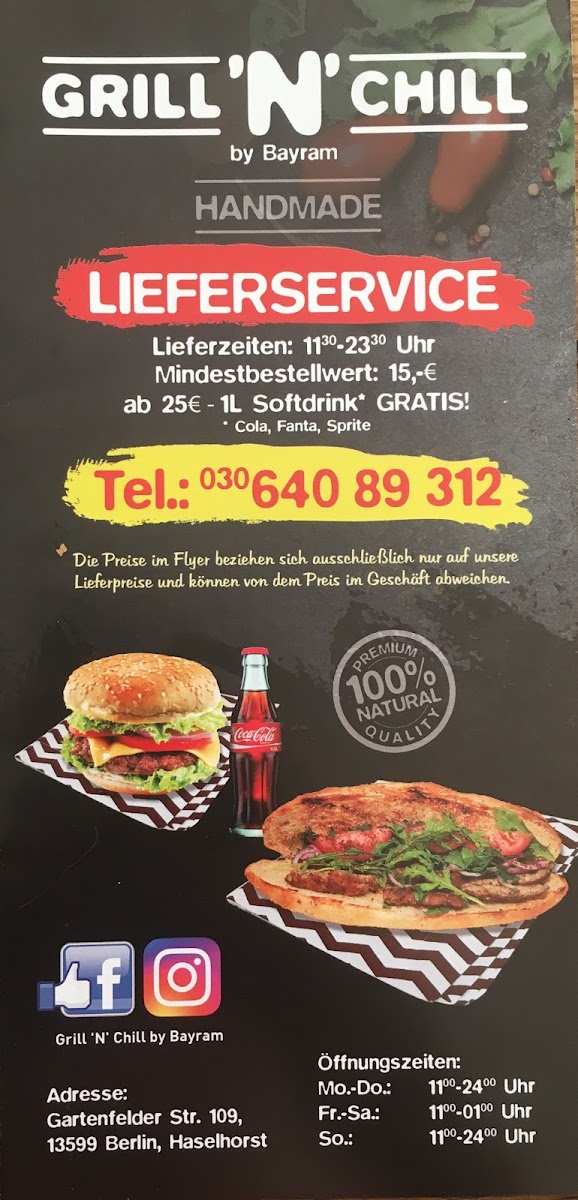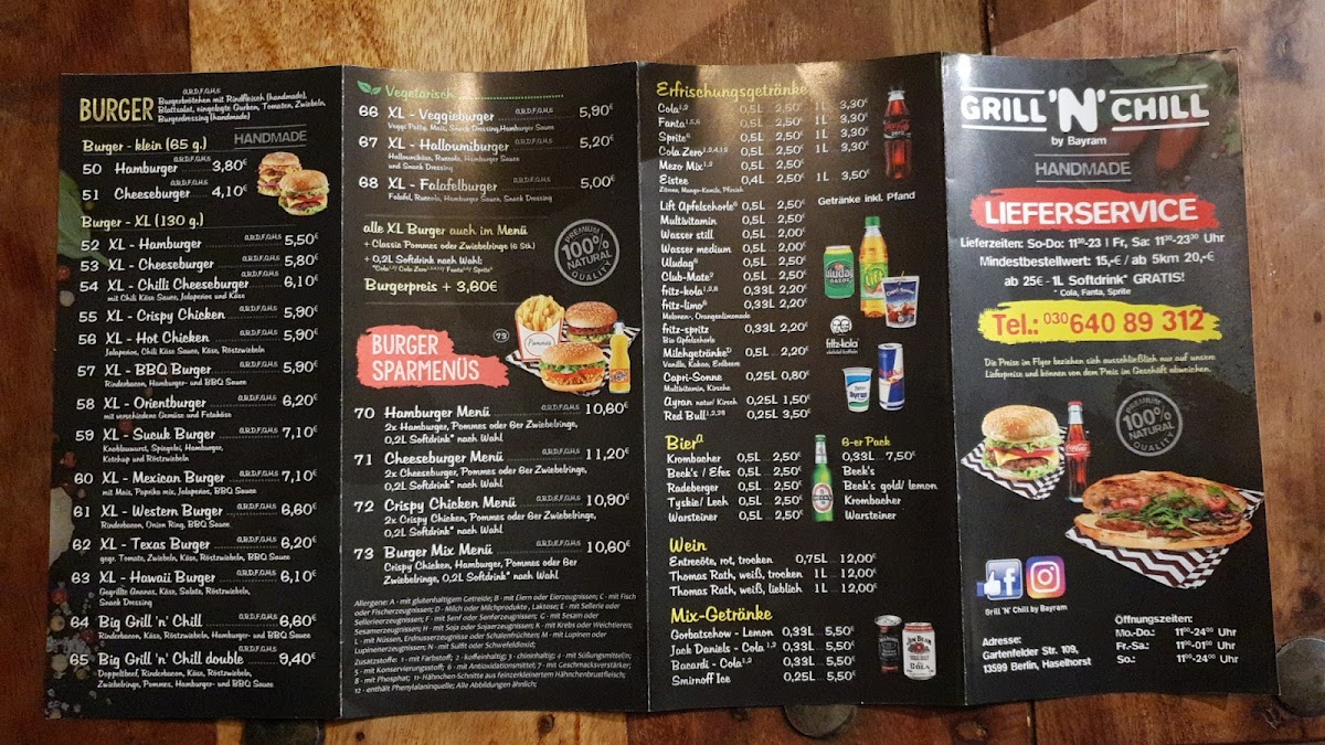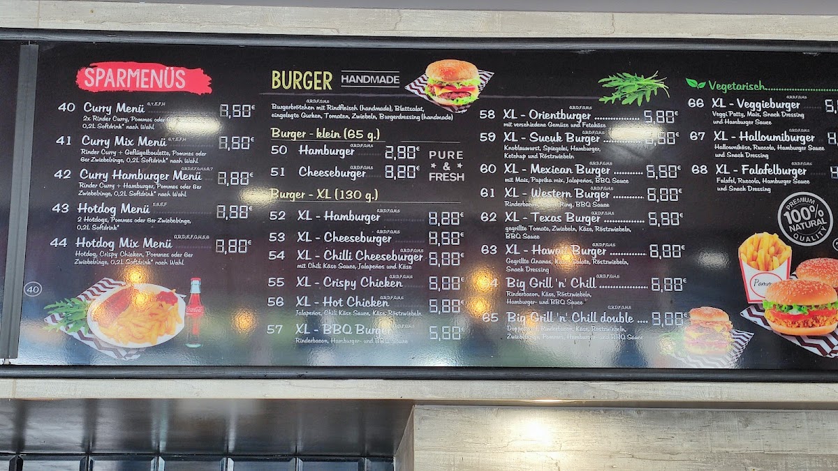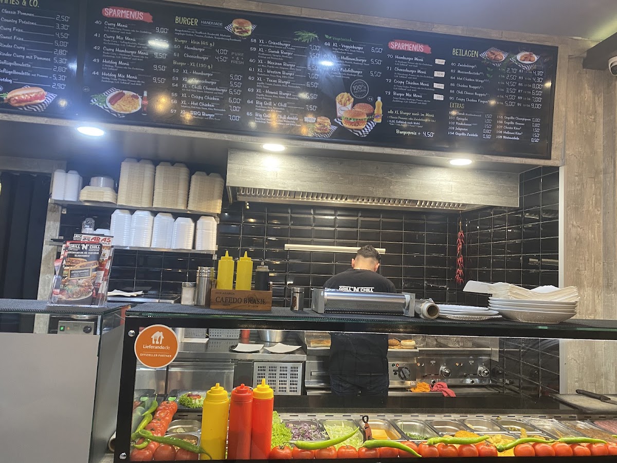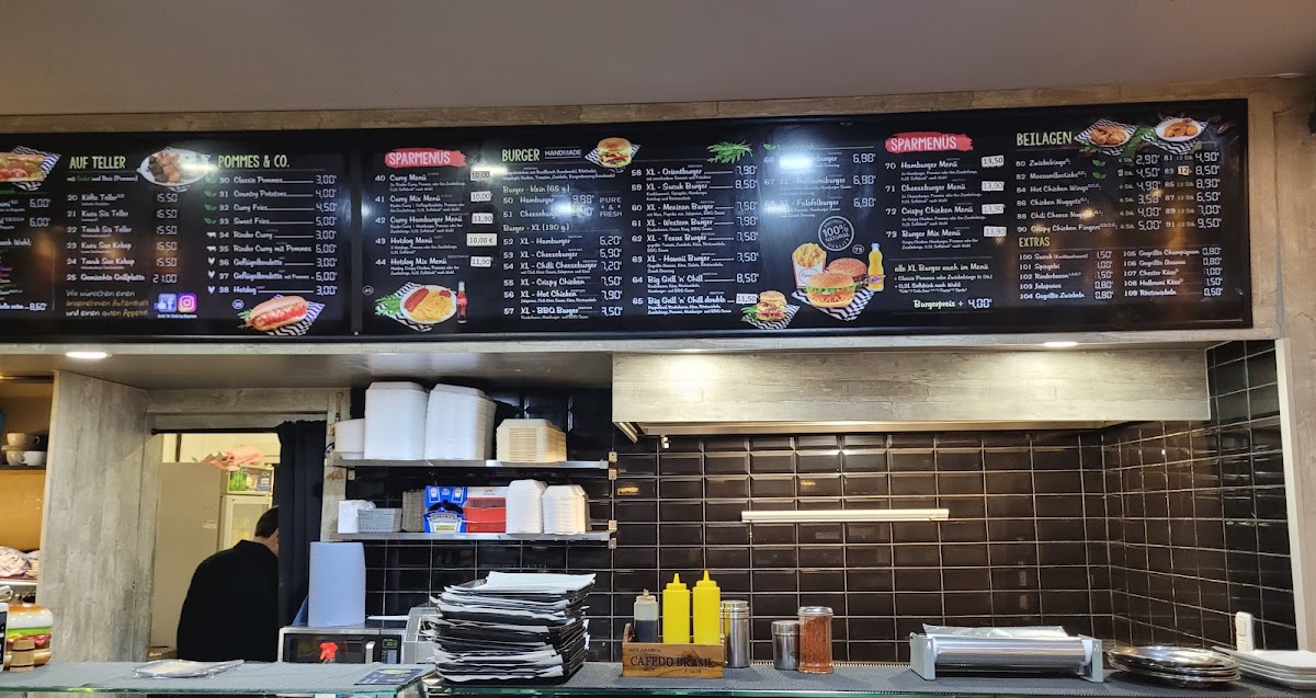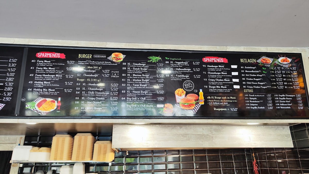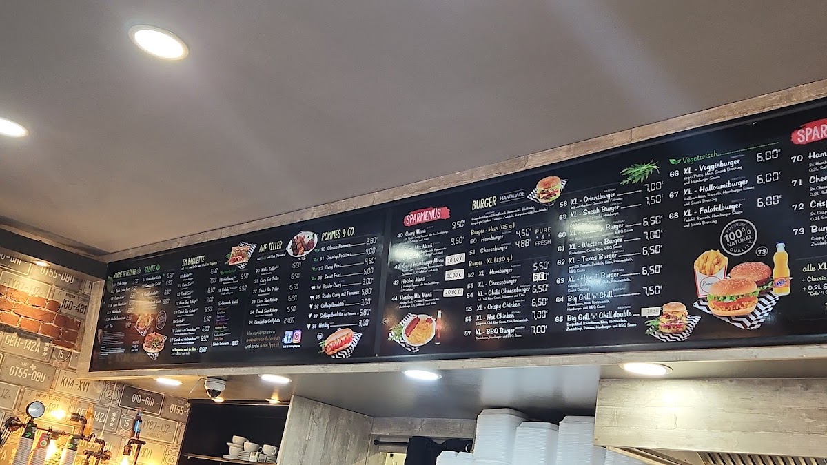 The menu at Grill 'n' Chill Burger Köfte Gemüse Döner offers a wide variety of delicious options, perfect for any craving. For a quick and satisfying meal, the Sparmenüs like the Curry-Menü and Hotdog-Menü provide great value. The restaurant also offers refreshing and light choices such as the Gemischter Salat and Thunfischsalat, or for a heartier salad, the Hähnchenbrust Salat is a standout. For sandwich lovers, the Köfte-Baguette and Tavuk Sis-Baguette are filling and flavorful choices. The Döner options include the Gemüse Döner and Döner Box Klein, catering to those who enjoy a more traditional, yet flavorful dish. The XL-Burger-Menüs are perfect for burger enthusiasts, featuring hearty choices like the XL-Cheeseburger or the spicy XL-Chili-Cheeseburger. For those seeking a grilled experience, the Köfte-Teller and Gemischte Grillplatte offer savory grilled meats. The menu also has tasty sides such as crispy Zwiebelringe and indulgent Mozzarella Sticks. For drinks, there's a selection of Coca-Cola and Fanta Orange in various sizes to complement your meal. Whether you're in the mood for a classic burger, a healthy salad, or a grilled dish, Grill 'n' Chill offers a well-rounded menu to satisfy all tastes.